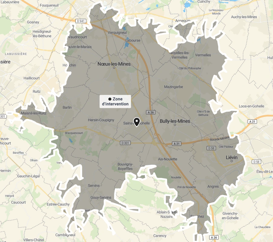 J’interviens sur la ville de Sains-en-Gohelle et dans un rayon d’environ 10 km autour. Cela inclut plusieurs communes voisines :